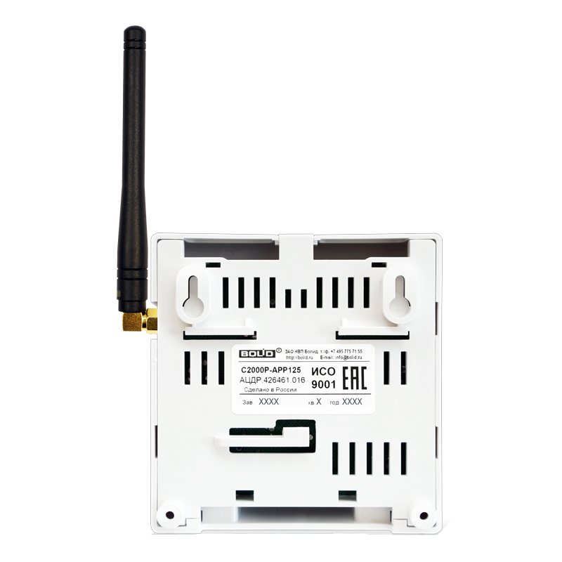 Адресный радиорасширитель для работы с С2000-КДЛ или С2000-КДЛ-2И, до 125 радиоустройств, работа с ретрансляторами «С2000Р-РР» (до 15 шт.), f-раб. 868 МГц, 10 частотных каналов, встроенный изолятор коротк. замыкания ДПЛС; U-пит.10.2...28.4 В (питания по ДПЛС или от внеш. источника питания), I-потр. 18 мА, IP20, t-раб.-30…+55°C