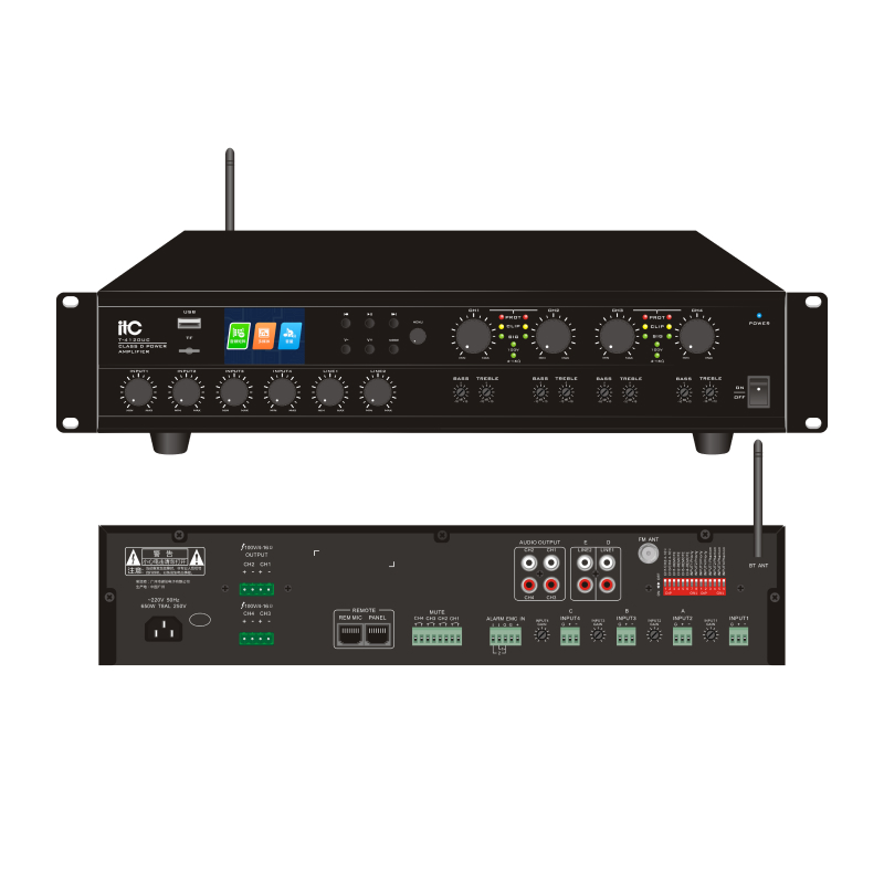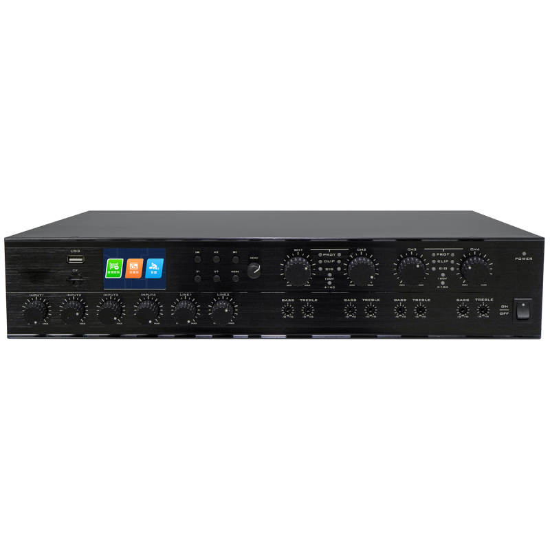 Мощный 4 канальный цифровой усилитель мощностью 120W на каждый канал с постоянным импедансом и напряжением (4-16Ω/100V)