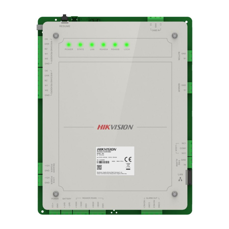 RS-485: 2 для считывателя карт (1 для связи, 1 для избыточности; каждый интерфейс может подключать до 2 считывателей)