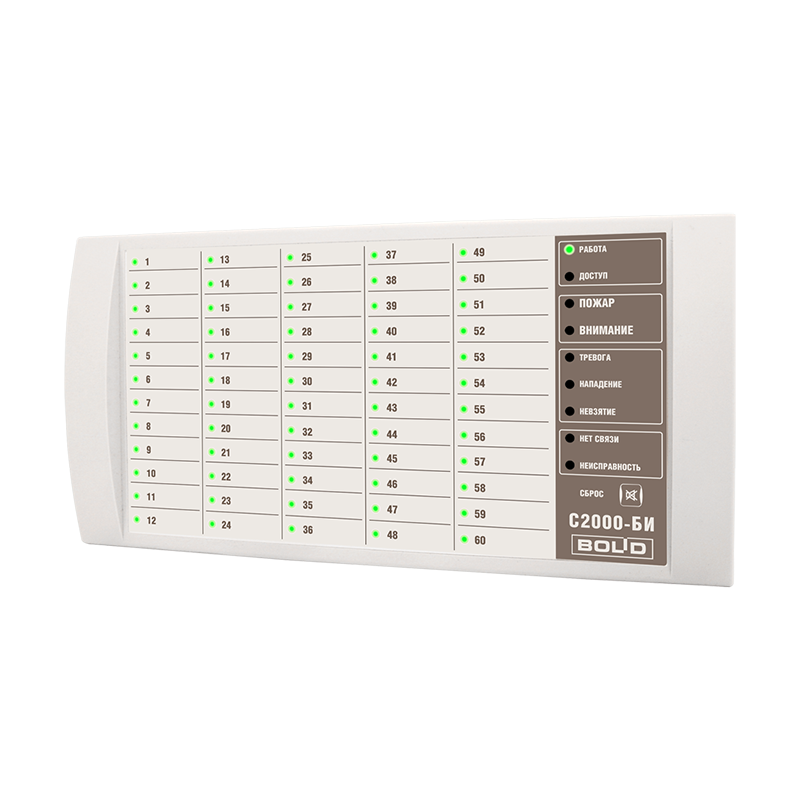 60 двухцветных индикаторов для отображения состояния разделов ИСО "Орион"