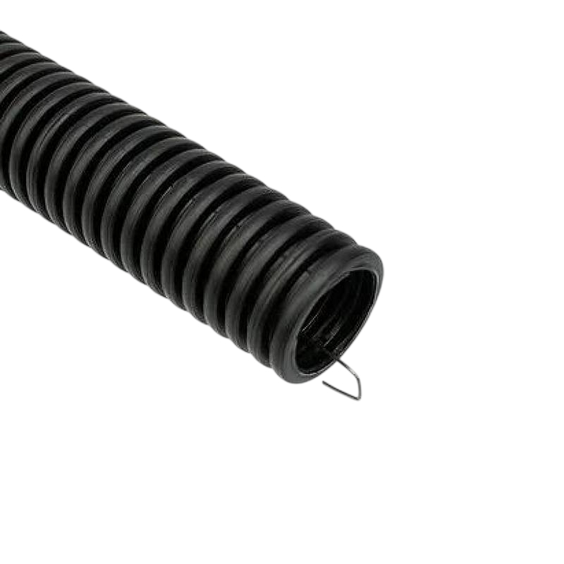 Труба гофрированная из ПНД с зондом, легкого типа, обладает высокими показателями гибкости и пластичности, что позволяет реализовывать изгибы до минимального радиуса, равного трём диаметрам используемой трубы. Наличие зонда служит для удобства протяжки кабеля. Материал из которого произведена труба, является прекрасным диэлектриком. Трубы данного вида применяются для прокладки информационных силовых и слаботочных электрических коммуникаций скрытого типа (в штробах и стяжках пола): в офисах, жилых помещениях, производственных и административных зданиях, медицинских и детских учреждениях при строительстве или реконструкции.