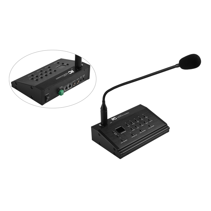 Используется она на базе дополнительного блока ITC T-6212А, к которому может быть подключено до 16 микрофонных консолей ITC T-218А